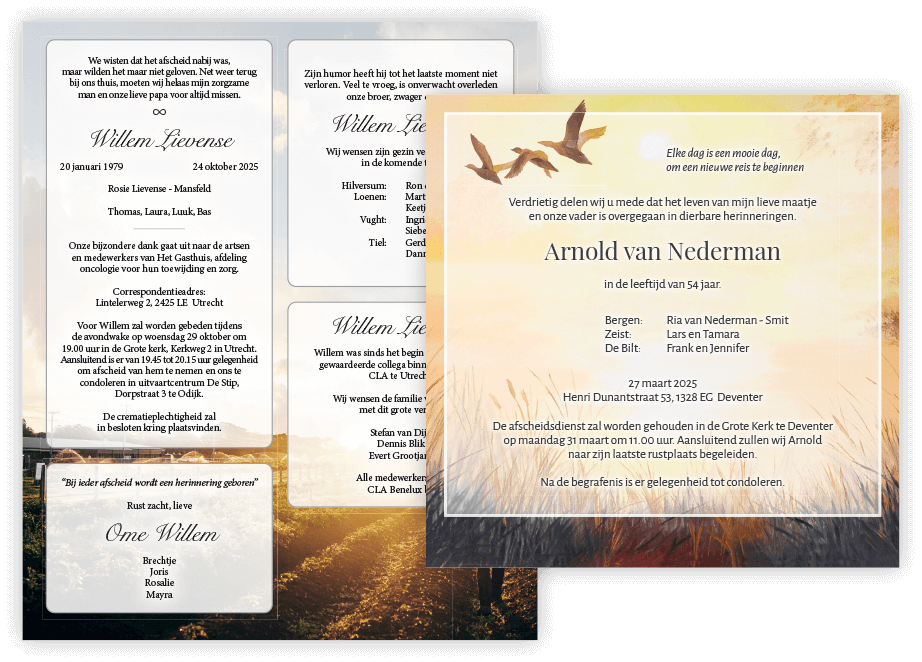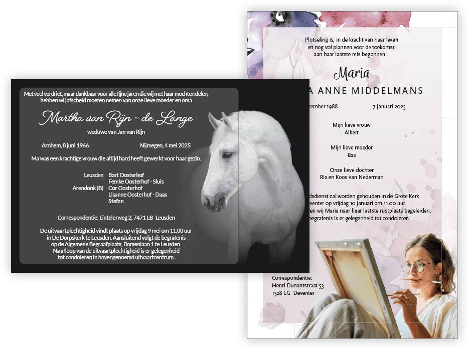 Voor iedereen die aandacht geeft aan rouwkaarten en rouwadvertenties.