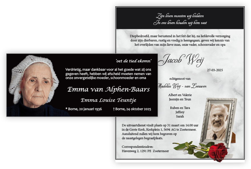 Rouwkaarten, rouwbrieven en rouwadvertenties
