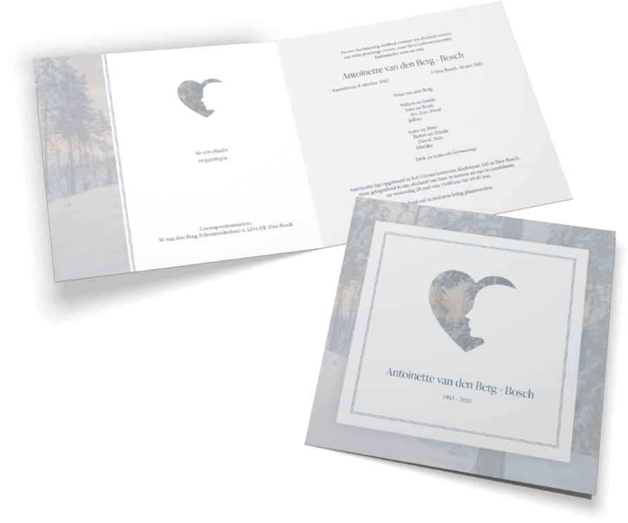 Doe dus waar u goed in bent, dat doen wij ook! Op onze website kunt u in een paar stappen uw wensen kenbaar maken. Dat is heel simpel, u kiest een ontwerp van een rouwkaart, rouwbrief of rouwadvertentie. Voor de inhoud kiest u uit één van onze bibliotheken met de voorbeelden van afbeeldingen en iconen, teksten, gedichten, gezangen, psalmen of spreuken. Uw keuze vult u aan met de persoonlijke gegevens of foto’s en wij doen de rest. Natuurlijk kunt u ook een volledig nieuw ontwerp aanvragen. Met een duidelijke omschrijving van uw wensen maken onze ontwerpers een rouwkaart, rouwbrief of rouwadvertentie op maat.