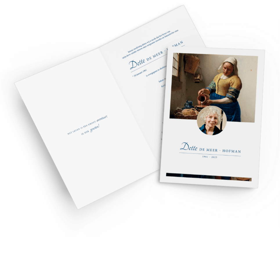 Wilt u het ontwerp van een rouwkaart of rouwbrief als PDF ontvangen en zelf printen? U kunt ons ook het bestand naar uw eigen drukker laten sturen. Of heeft u liever dat wij het drukwerk regelen? Dan bepaalt u alleen het tijdstip en wij regelen de rest.