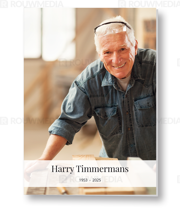 Op deze kaart wordt de afbeelding geplaatst over de gehele voorzijde en wordt de naam in een balk over de foto geplaatst.