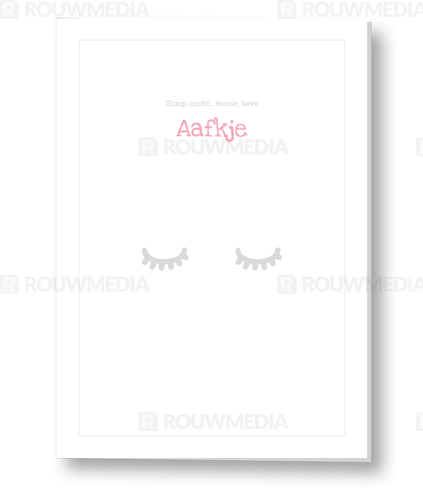 Op deze kaart staat een grijs kader en een afbeelding van gesloten oogjes. Aan de binnenzijde is ruimte voor een eigen foto.