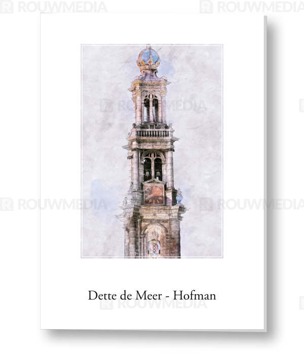 Op deze kaart worden de Westertoren van Amsterdam weergegeven. Onder de schets kan de naam en datums worden getoond.