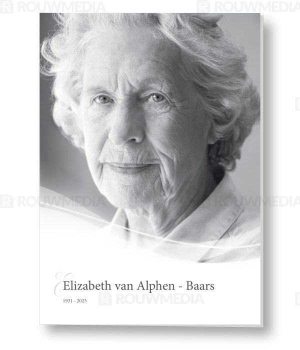 Voor deze staande rouwkaart kunt u een portret of afbeelding op de kaart weergeven. Onderin de kaart is er ruimte om de naam en datum te tonen.