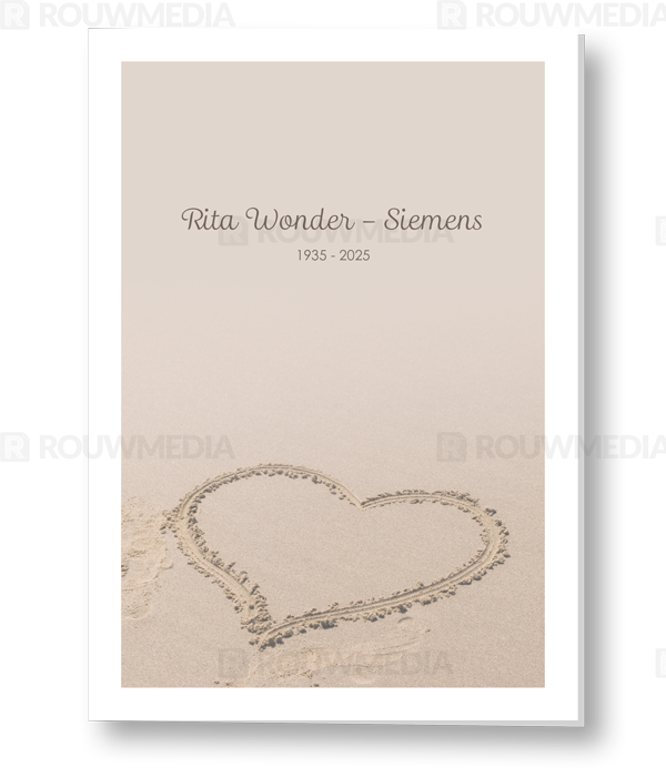 Op deze kaart wordt een getekend hart in het zand getoond.