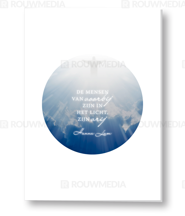 Op deze rouwkaart wordt het beeld van Jezus Christus getoond in de hemel met een religieuze tekst