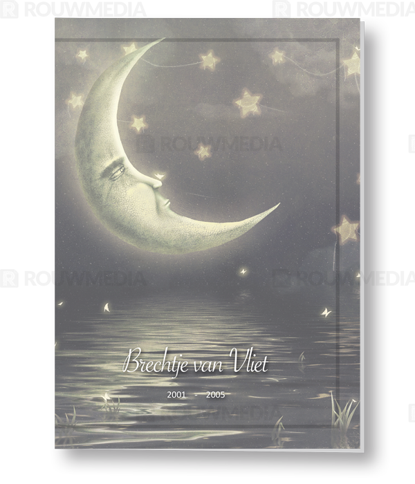 Rouwkaart met maan en de sterren voor een kind aan de binnenkant kan een foto worden toegevoegd.