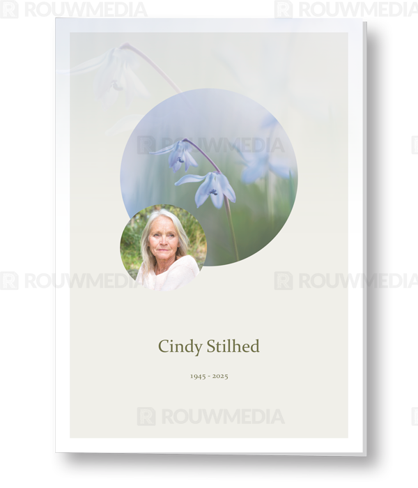 Bij deze rouwkaart wordt de sterhyacint in een grote cirkel weergegeven. Daarnaast is er ruimte voor een portret in de kleine cirkel.